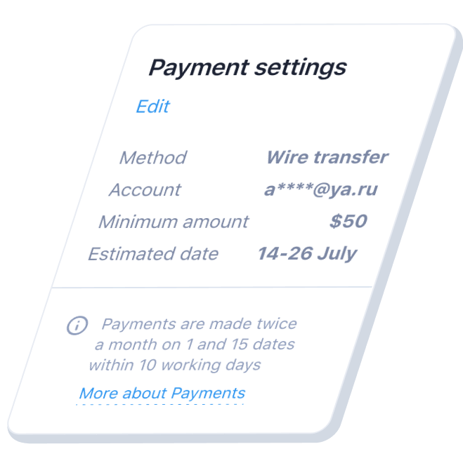 Capitalist, USDT, Webmoney, Neteller, Bitcoin, Skrill and more. And we pay twice a month!